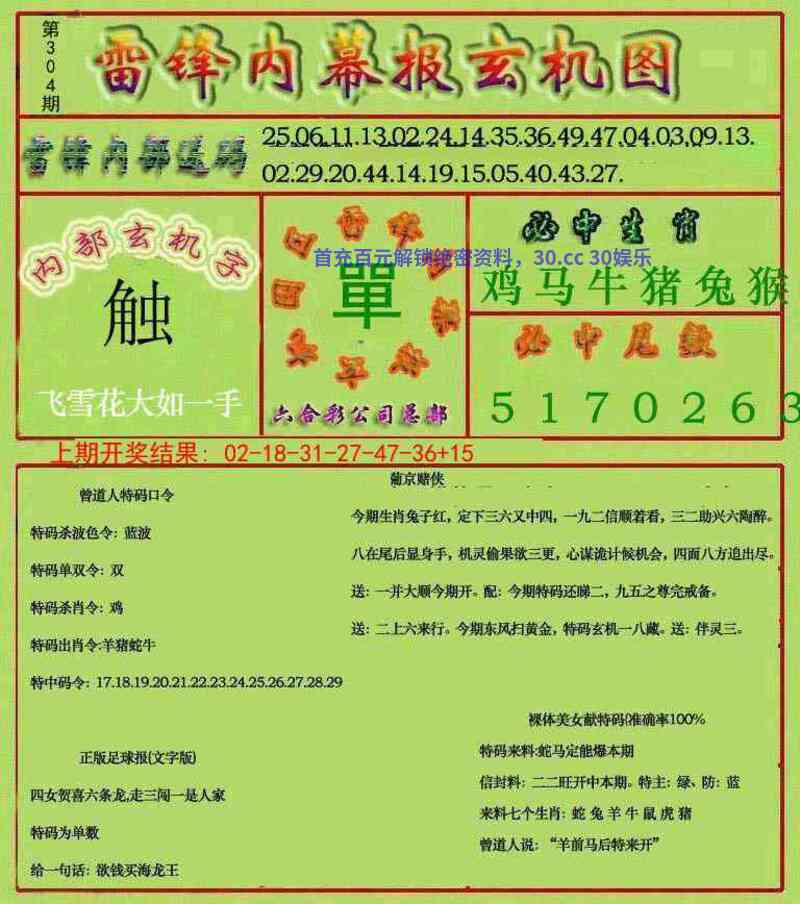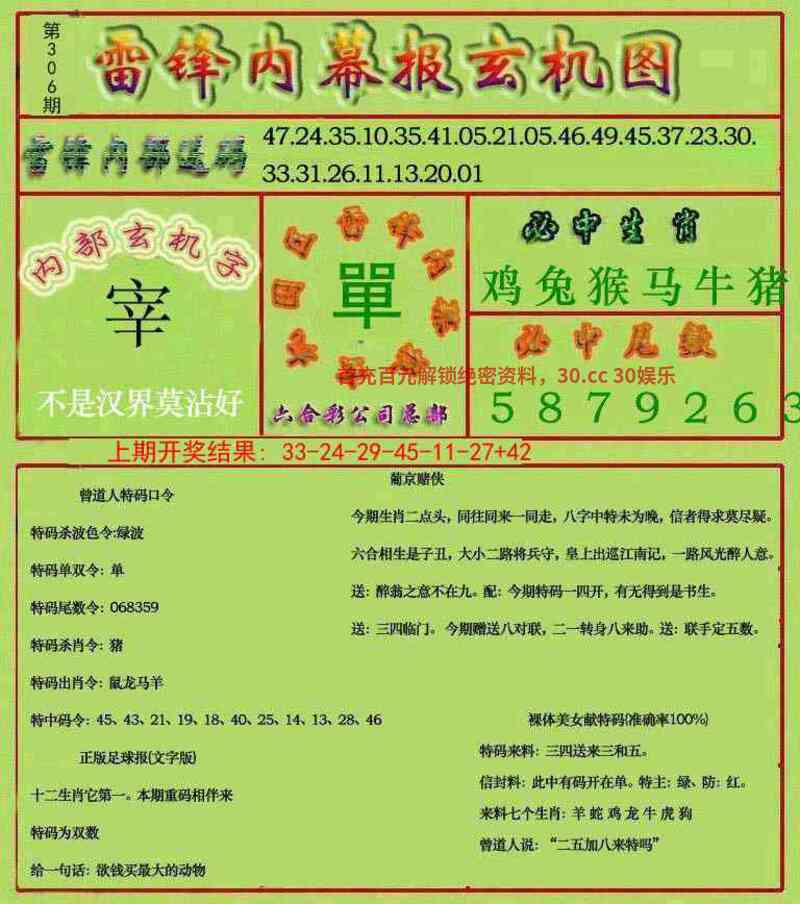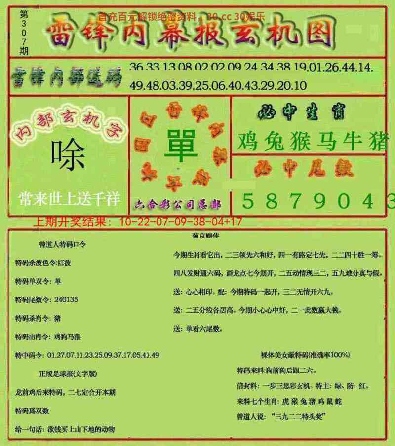 306期:男女两肖男肖+鸡蛇』开:牛17准
